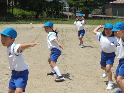 新体力テストの種目であるソフトボール投げをしました。ステップと前方斜め上に向かって腕を振る動きを身に付ける練習をしてから、測定しました。「かっこよく、遠くに投げることができた!」と、充実感いっぱいです。