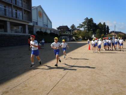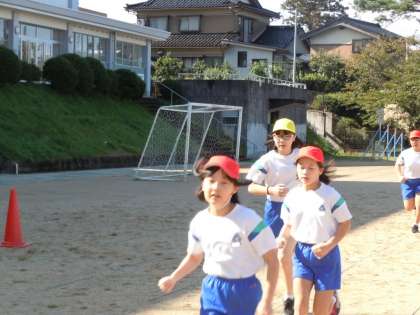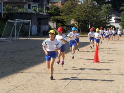 持久走の学習が始まりました。走る前の子供たちは「どきどきする」「走るの苦手」と緊張の言葉、前向きになりにくい言葉が出る子もいました。しかし、言葉とは裏腹に笑顔で答えてくれます。「マイペースでいいよ!」という声掛けにうなずきながら走る子もいます。