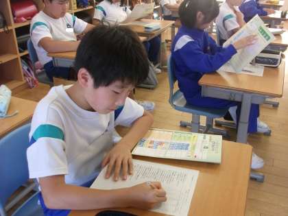 環境チャレンジ10 ー4年ー 10月17日 公開日 2023/10/17 更新日 2023/10/17 4年生 講師の方を招いて、子供たちが夏休み中に取り組んだ「環境チャレンジ」の取組を振り返りました。学習発表会のステージ発表で紹介したことは、これからの社会で改めて大切なことであることを実感しました。