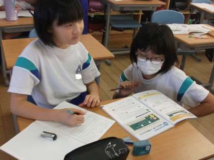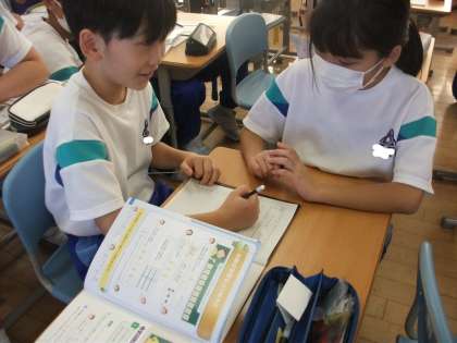 分母がちがう分数のたし算のしかた(算数) ー5年ー 10月17日 公開日 2023/10/17 更新日 2023/10/17 5年生 分母がちがう分数のたし算の仕方を考えました。これまでの分数の計算は、分母が同じだったのですぐに計算できました。でも、数直線を使って「同じ大きさの分数」を見つけたことを使うと…。「あ!分かった!」という声が上がりました。