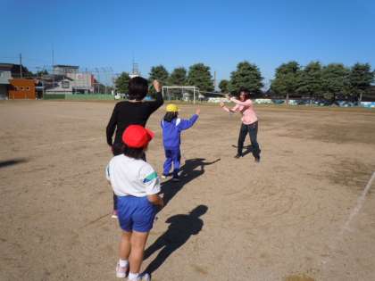晴れて気持ちのよいグラウンドに出て、長なわ跳びをしています。仲間と息を合わせ、リズムよく跳ぶことが大切です。みんなで声をかけあっています。