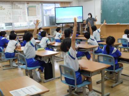 びっくりやさい(図画工作科)ー2年ー11月17日 公開日 2023/11/17 更新日 2023/11/17 2年生 「こんな野菜だったらびっくりするよね」というお話を自由に発表しています。友達の考えを聞いてイメージを膨らませ、今度はタブレットを使って野菜の写真を見て、形からイメージを広げたり、ラフスケッチを描いてみたりと、紙に描くことが待ちきれない様子でした。