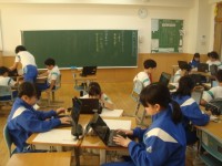分数のたし算をどのように計算すればよいのか話し合っています。自分の考えと友達の考えを比べ、よりよい考え方を導こうとしっかりと説明したり、聞いたりしています。