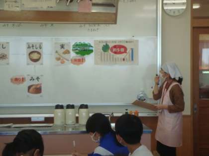 給食センターより栄養教諭の先生に来ていただき、学習しました。