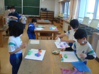 マツボックリのけん玉をつくったり、ドングリのジグザグ滑り台のようなおもちゃを作ったりしています。