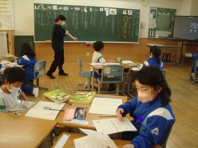 静かに集中して取り組めるようになってきた1年生の子供たちです。
