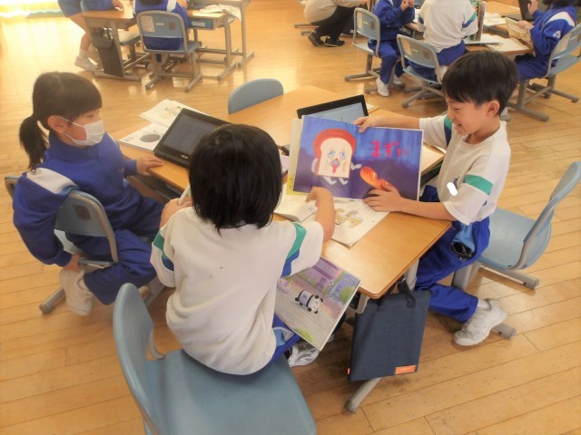 友達の話を静かに聞いて、「他におもしろいところはありましたか?」「〇〇なところがおもしろいですね。」と質問や感想を言い合っている姿から、「ききかためい人」になろうとする気持ちが伝わってきました。