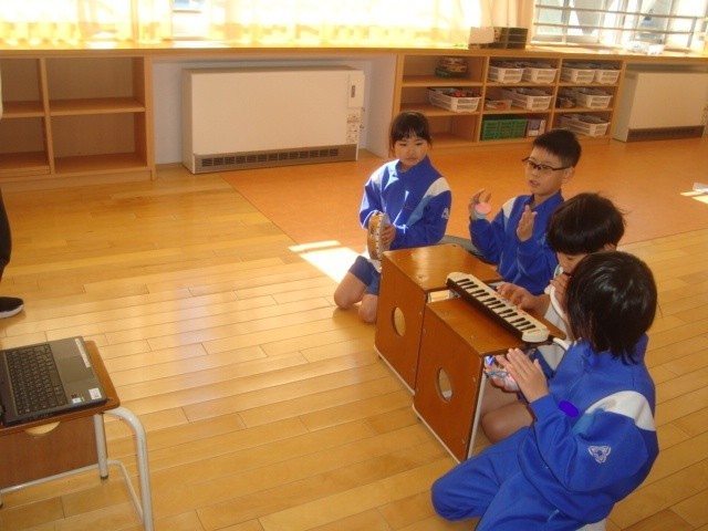 3拍子のリズムを楽しむためにバンブーダンスをしました。
