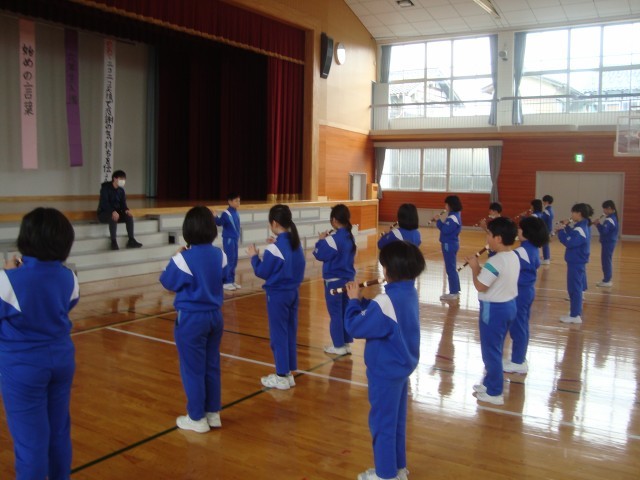 卒業おめでとう集会の3年生の出し物は、リコーダー演奏です。
