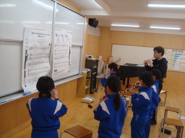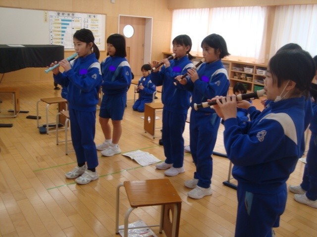 3年生 「パフ」のリコーダー練習(音楽科)1月23日