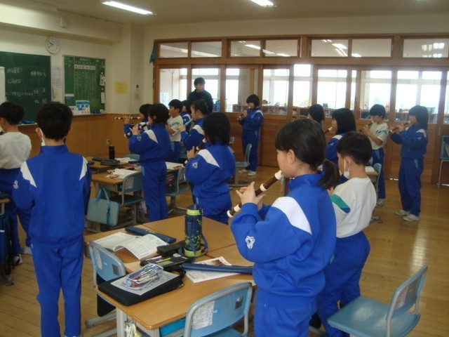 3年生 「パフ」のリコーダー練習(音楽科)1月23日
