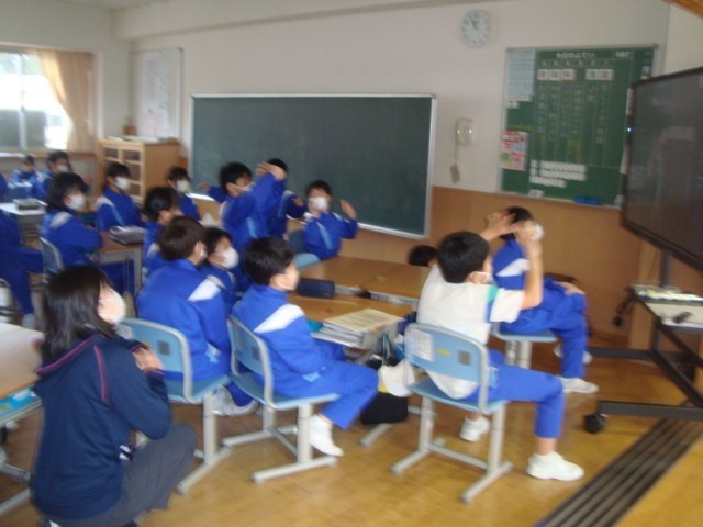 4年生 ソフトバレーボールの授業の前に(体育科)12月15日