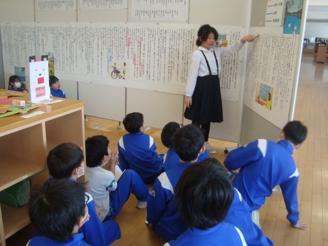 一緒に動いてみる子供たちもおり、この後の体育館での動きにつながることを願っています。