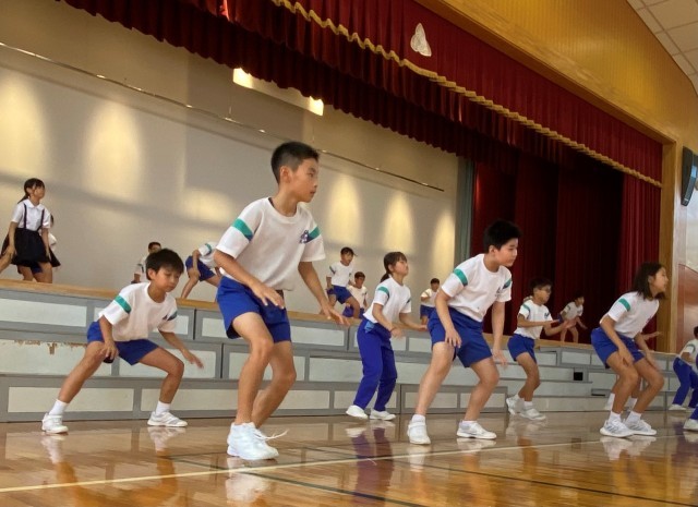 学習発表会に向けて、講師の先生をお招きし、ダンスの学習をしました。動きのON・OFF・STOP、指先へ送る目線等、体の動かし方等のポイントを学び、子供たちの動きにキレが増してきました。