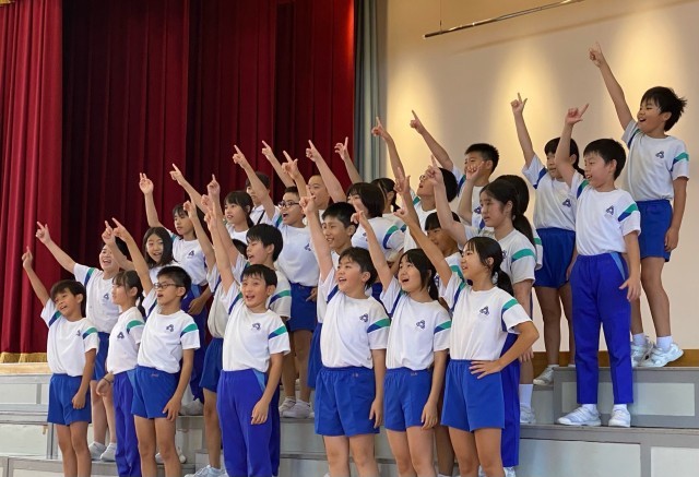 5年生は、運動の楽しさが伝わるよう、表情や台詞の声色も考えて練習に取り組んでいます。