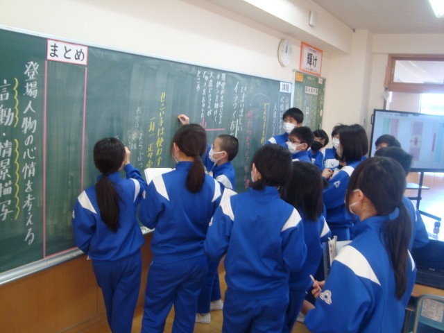 「大造じいさんとガン」のお話の山場の前後で残雪に対する大造じいさんの思いはどのように変わったのかについて考えました。