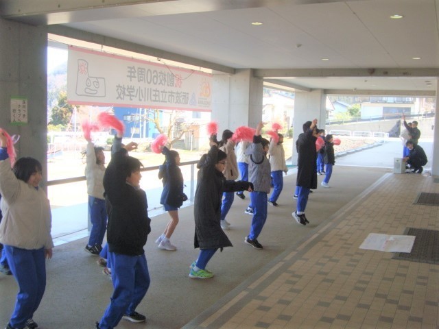 5年生は、卒業生が中学校へ行ってもがんばれるよう、心をこめて送ります。