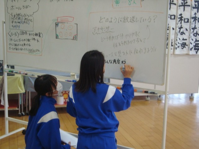 5年生は、運動の楽しさが伝わるよう、表情や台詞の声色も考えて練習に取り組んでいます。