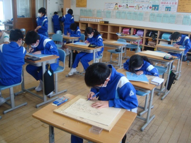 5年生 彫り進み版画(図画工作科)1月14日