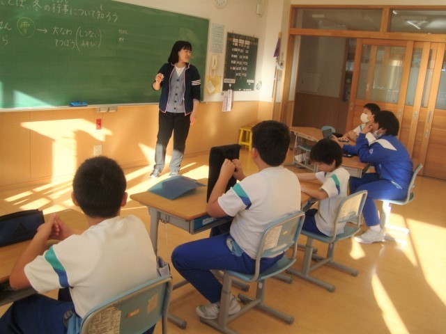 やまぶき2組は、冬の季節についてどんな生き物が出てくるのか、自然はどうなるのかそれぞれが話をしました。