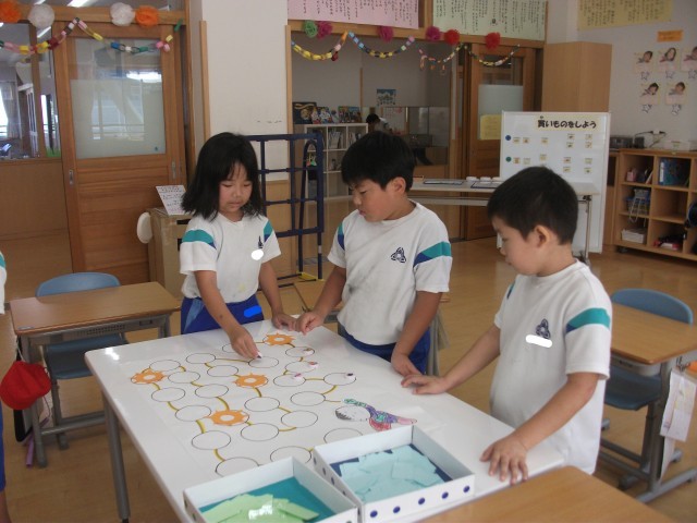 「これは」と書いてある答えのシートに花の写真をはり付けます。