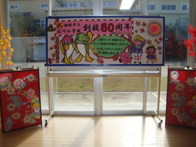 創校60周年記念式典に向けて、学校内の掲示物を紹介します。