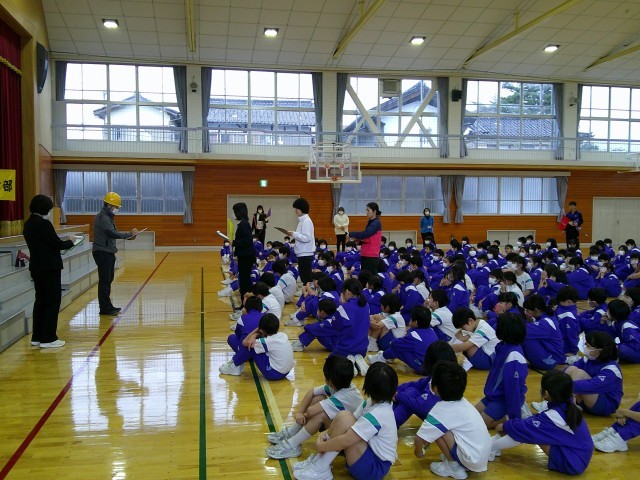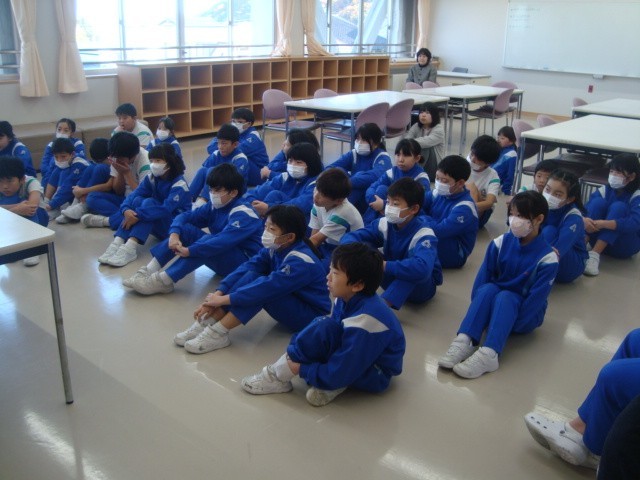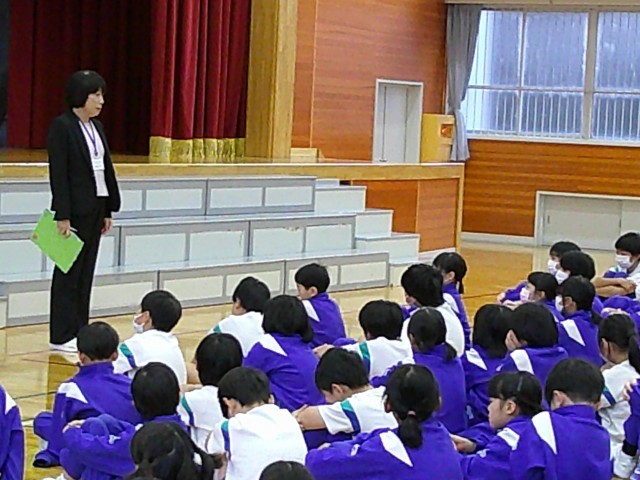 その後放送で、教頭先生より、地震の怖さや身を守ることの大切さの話を聞きました。各学級では、担任の先生からの話もありました。