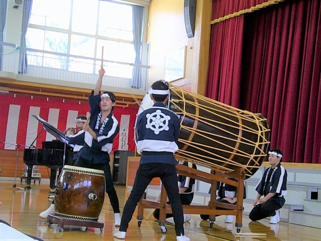 記念アトラクションでは、「越中いさみ太鼓保存会」の力強い演奏と、児童等の太鼓体験コーナーもあり、みんなで太鼓の楽しさを味わいました。全校合唱では「庄川っ子、元気っ子」をみんなで心を込めて歌いました。