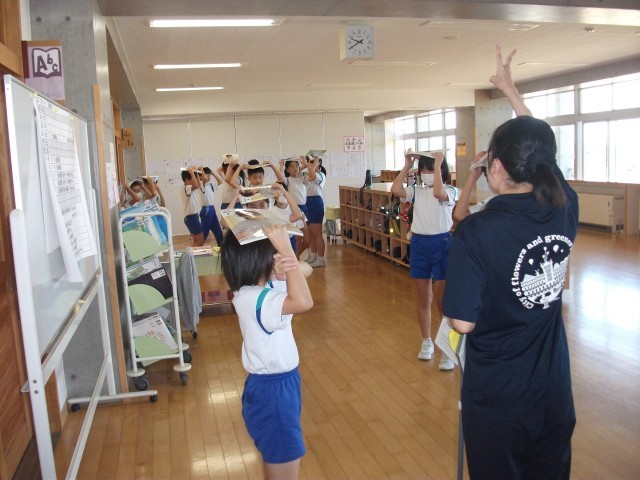 昔の雄神小学校、青島小学校、東山見小学校、種田小学校の写真を見せてくださったり、現在の小学校開校記念の日の様子を見せてくださったりしました。