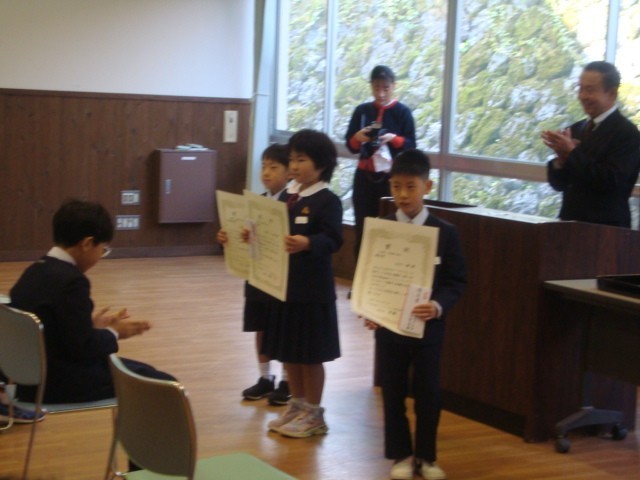 低学年の部、中学年の部、高学年の部で、それぞれ上位3名の子供たちが表彰され、副賞が授与されました。
