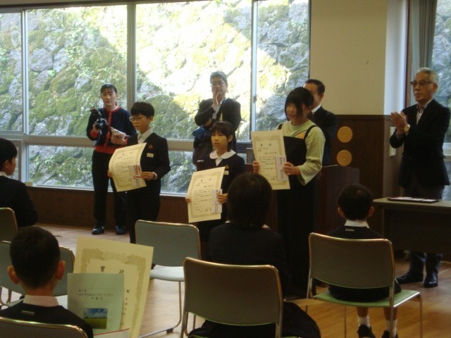 夏休み中に募集した庄川のすてきなところを選んで写した写真の表彰式がありました。
