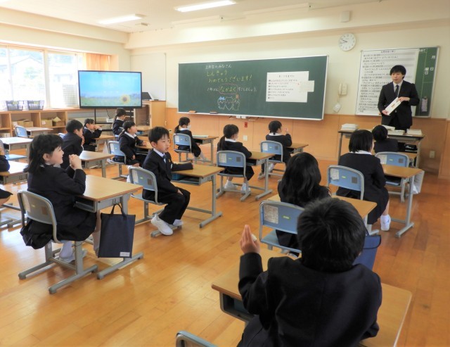 6年1組の教室でのお別れの時間でした。これまでの歩みを振り返り、担任の先生から話を聞きました。