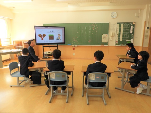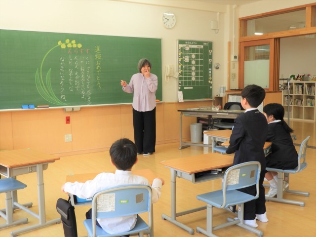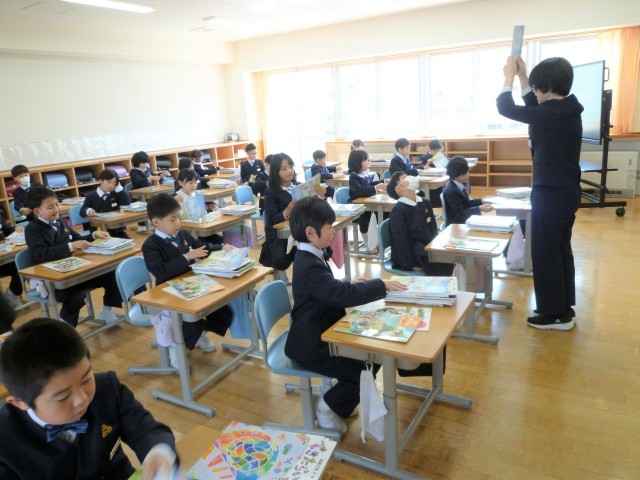 始業式の後は、各学級の時間でした。「担当の先生はどんな人かな」と担当の先生の自己紹介を真剣に聞いたり、「進級した学年では何を習うのかな」と新しい教科書をワクワクしながらのぞいたりしました。