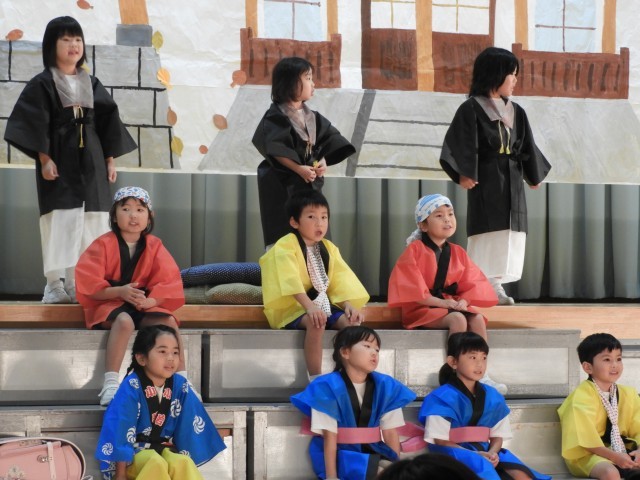 子供たちは、これまでの練習の成果を発揮して、堂々と役を演じたり、歌ったりすることができました。