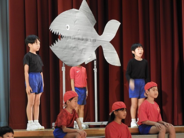 2年生は、国語科で学習した「スイミー」の劇に挑戦しています。