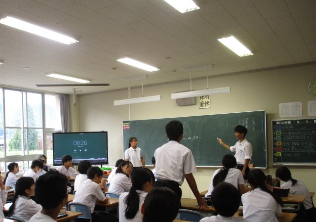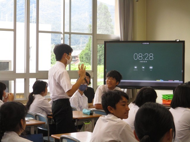 今日は、10月に予定されている学習発表会のテーマについて、各クラスで話し合いました。生徒会のメンバーが提案したテーマの良い点や改善点を挙げながら、活発に意見交換をしていました。