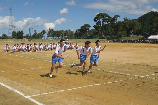 チームでバトンをつないだ全員リレー。競技中に、お互いを応援し合う姿が印象的でした。