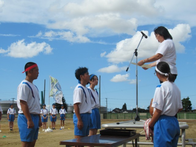 体育大会が終わりました。楽しく充実した時間をすごしました。自分たちで計画し、協力して運営する中で、他と力を合わせることやコミュニケーションなど、多くの学びをしています。自分や仲間のよい所を見付け、さらに伸ばしてほしいと思います。後片付けも率先して行う庄中生。よい姿です。