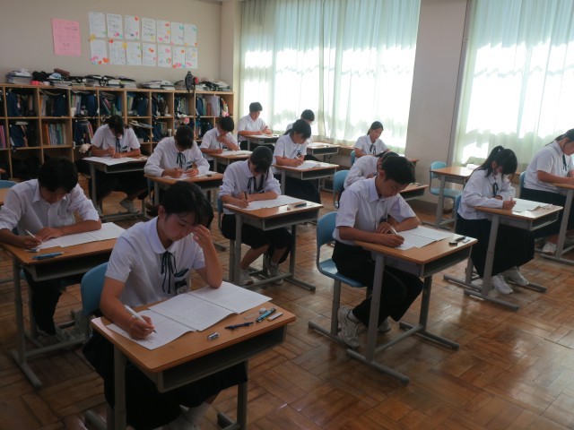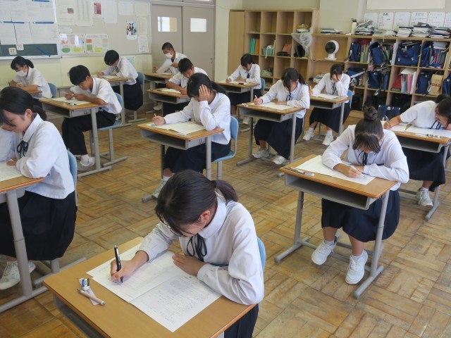 今日は3年生の実力テスト1日目。次こそいい点数を取りたい、と日々学習に取り組んできました。50分間集中していました。