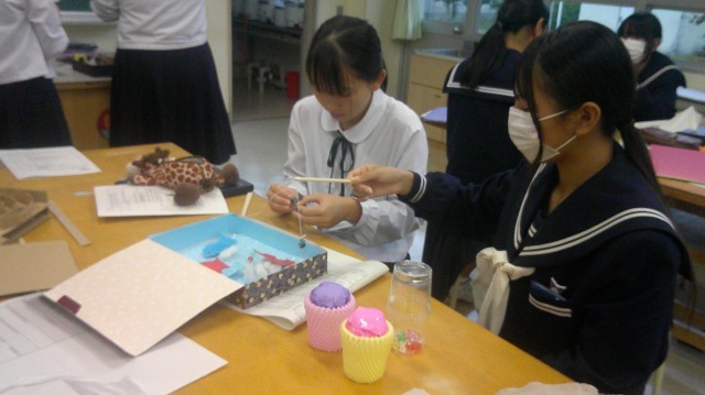 3年生は10月30日に庄川こども園訪問を控えています。家庭科の時間に幼児の発達について学びました。手作りのおもちゃをもっていきます。喜んでくれるか、楽しみにしながら準備を進めています。