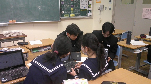 グループごとに、まとめて発表の準備を進めています。どうやったら聞く人に分かりやすく届くだろう、とデータを表にしたり、写真などの画像を採用したりと工夫を考えています。本番が楽しみです。