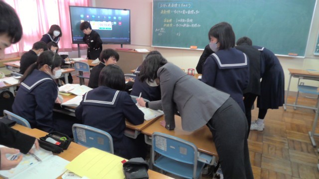 全体での確認の場面、先ほど「わかった!」と声を上げていた生徒が、自信をもって自分の考え方を説明していました。