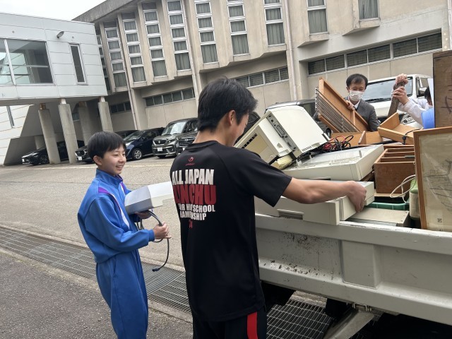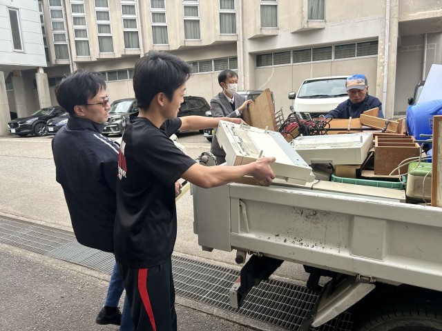 部活動で来ていた生徒がトラックに荷物を乗せる手伝いをしてくれました。