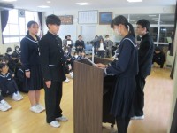 本年度も折り返し地点が近付き、いよいよ後期生徒会役員を決める時期となりました。各候補者が公約を一生懸命に訴えました。代表質問以外に一般質問も多くあり、自分たちの学校をよりよくしたいという思いが強く伝わってきました。開票結果は、帰りの会の時間に校内放送等で発表される予定です。