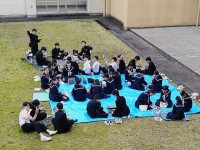 今からスカイツリーを班ごとに見学します。たくさんの観光客がおられます。