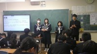 砺波市学校給食センターの先生から、いよいよ本格的な受験期を迎える3年生に「受験期を乗り切る食事」の取り方やよりよい生活のあり方について教えていただきました。必要な栄養素の種類、生徒たちがよく食べるものを実例に具体的に知ることができ、すぐに行動できそうです。体調を整えるためにどうすればよいか、いくつかの質問にも答えていただきました。ありがとうございました。