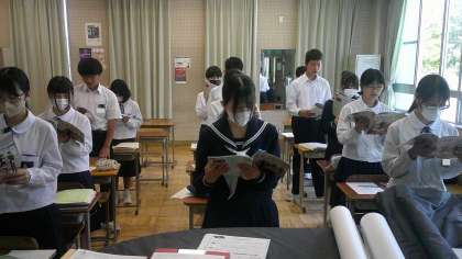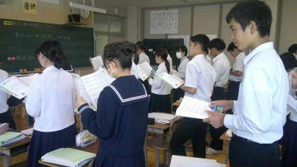 2年生が音楽の時間に、歌詞から感じる情景について話し合っています。「♪夏が来れば 思い出す はるかな尾瀬 野の小道」感性はそれぞれ異なります。仲間の感じ方を聞いて、驚いたり、発見したりした1時間でした。次はよい発声で歌います。