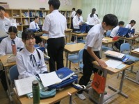 3年生の音楽では、ペアの人とリズムアンサンブルを創作しています。考えたリズムを、手や足、腕、太ももなどを使って、ボディパーカッションで演奏します。それぞれに音の出し方や音楽のつなげ方などが工夫されいて、大変おもしろいです。