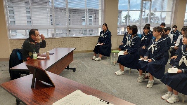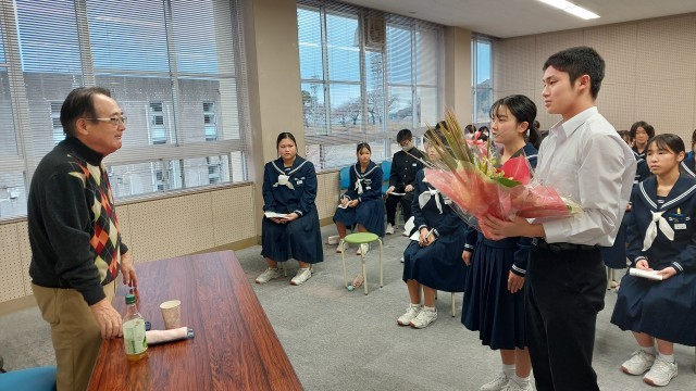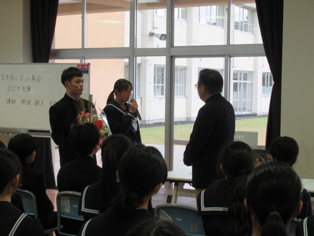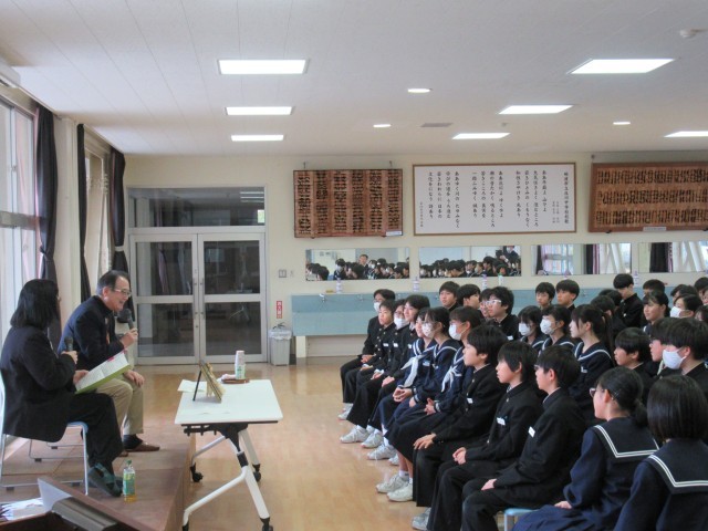 3年生に講師の方は、自分の学生時代のことや失敗したことなど、明るく語りかけてくださいました。「好奇心が大切」「高校や大学に進学し、過ごすことが大切。そこでの体験や人との出会いが、あなたの人生を豊かにする」とお話くださいました。人の基盤となる性質のもとは故郷にあり。庄中生も好奇心を大切にして人生を切り拓きたいと考える時間でした。先輩、ありがとうございます。