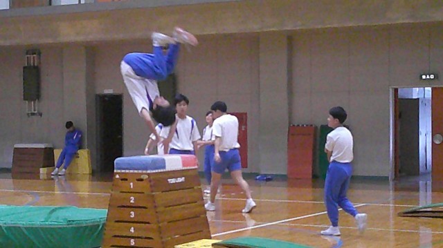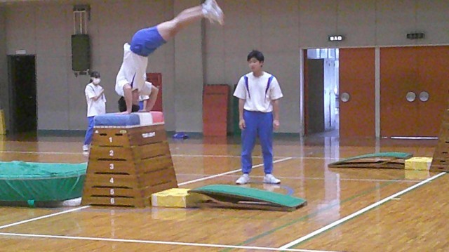 保健体育でマット運動や跳び箱運動、ダンスをしています。体を温め、技に挑戦したり、繰り返し練習したりしていました。体を動かすことのよさを感じました。